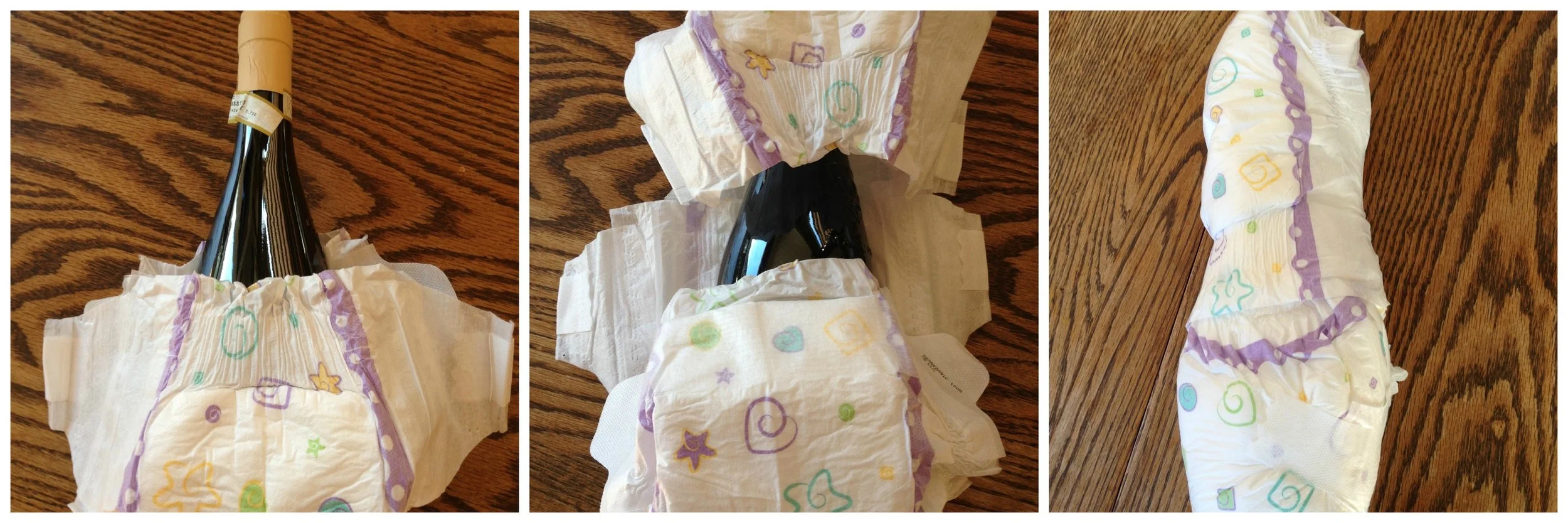Here is how it’s done: lay your bottle (AKA ‘baby’) on your hotel bed. Wrap a diaper around the bottom, another around the top, and then 1-2 extra diapers around the sides for absorbency insurance. Nestle the precious cargo in the center of your luggage with clothes on top, bottom and around the bottles. When you get home your bottles should be in one piece. And if a misfortune happens and they aren’t, the diapers should absorb the majority of your Italian Chianti.